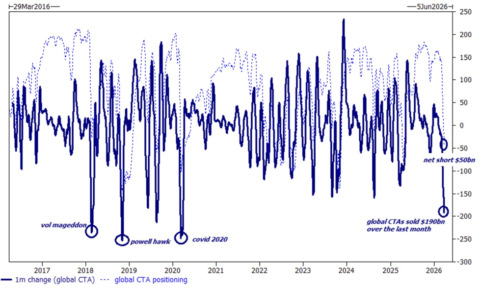 Los CTA a nivel mundial se deshicieron de acciones por valor de 190.000 millones de dólares durante el último mes, el ritmo de ventas más rápido desde la pandemia