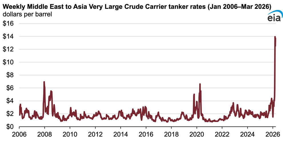 Las tarifas de los petroleros en Oriente Medio alcanzan en marzo su nivel más alto en varias décadas