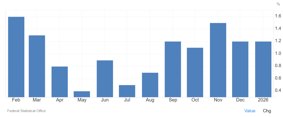 Los precios al por mayor en Alemania subieron un 1,2% interanual en enero, igualando el ritmo registrado el mes anterior y marcando el decimocuarto aumento consecutivo
