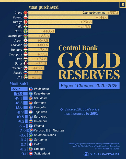 China, Polonia, Turquía, India y Brasil, los mayores compradores de oro por parte de bancos centrales desde 2020