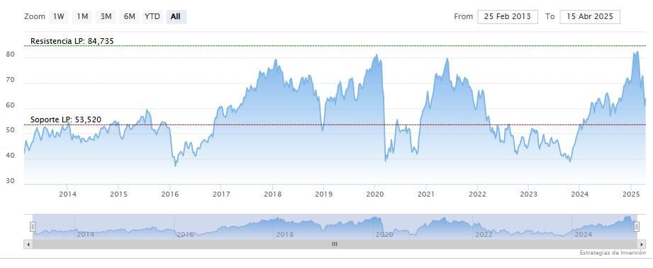 El soporte a mediano plazo se encuentra en los 55.53 dólares. Mientras, los indicadores de Ei se muestran mixtos.