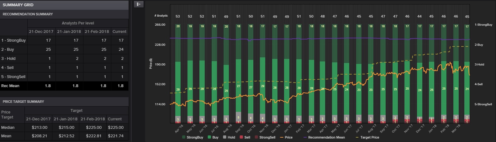 De hecho, el consenso de analistas que maneja Reuters mantiene una recomendación media de compra para el valor con un precio objetivo de 225 dólares por acción.