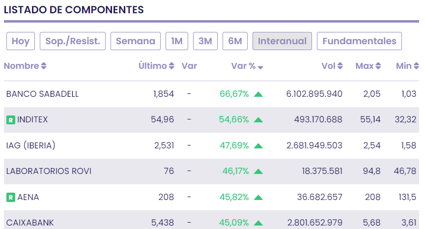 Si miramos los valores que más rentabilidad han ofrecido de la bolsa española en el último año, podemos ver a los ganadores del año