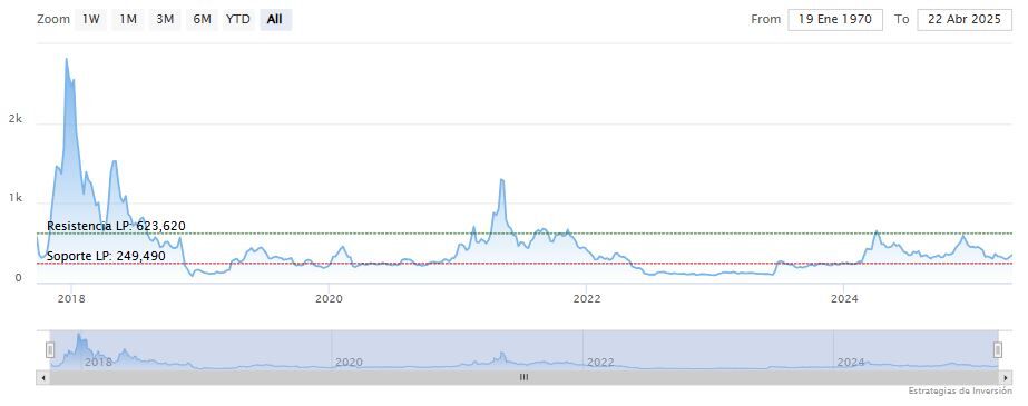 El soporte a mediano y largo plazo se encuentra en los 249.49 dólares. Mientras, los indicadores de Ei se muestran mixtos.