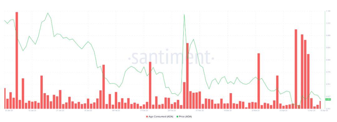 La métrica de edad consumida se disparó durante la última semana, lo que indica un repunte significativo en la actividad de venta por parte de los titulares a largo plazo. Dado que el precio de Cardano subió ligeramente a principios de semana, los LTH probablemente aprovecharon la oportunidad para retirar su dinero, capitalizando la breve racha de ganancias. Esta actividad de venta ha intensificado la presión a la baja sobre la moneda, provocando una fuerte caída en el precio.
