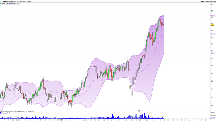Aena en gráfico diario con volumen de contratación (ventana inferior)