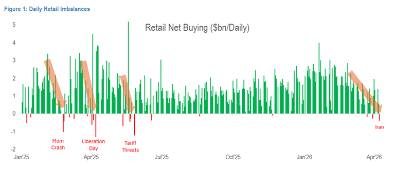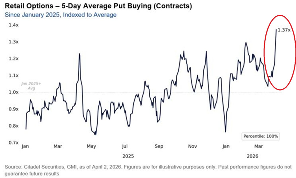 Los inversores particulares también gastaron más de 275 millones de dólares en primas netas de opciones de venta entre el 27 de marzo y el 2 de abril, mientras que el S&P 500 subía, según datos de Global Markets Investor.