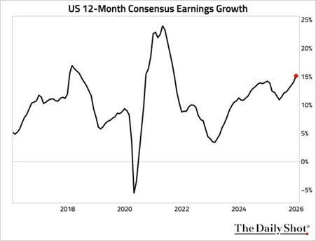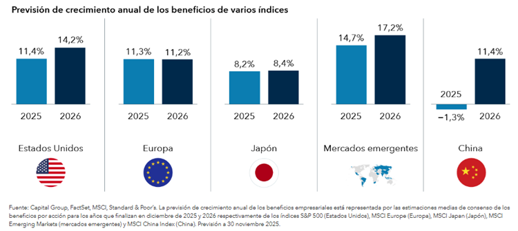 Las expectativas consensuadas de crecimiento de los beneficios para 2026 se sitúan en la parte alta de los resultados históricos