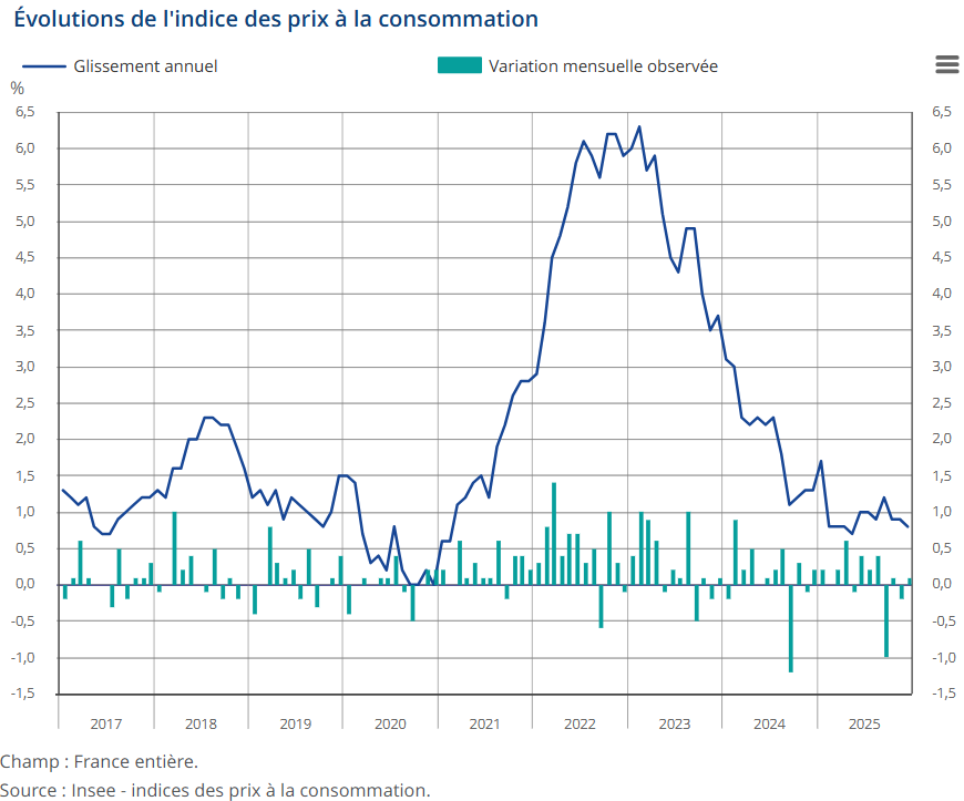 El IPC de Francia baja al 0,8% en diciembre desde el 0,9% anterior