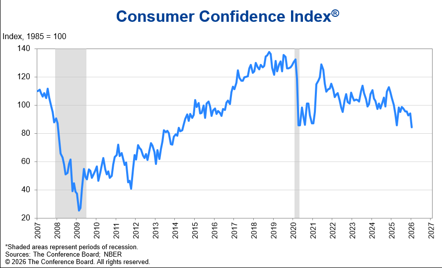 La confianza del consumidor The Conference Board de EEUU cae a 84,5 en enero