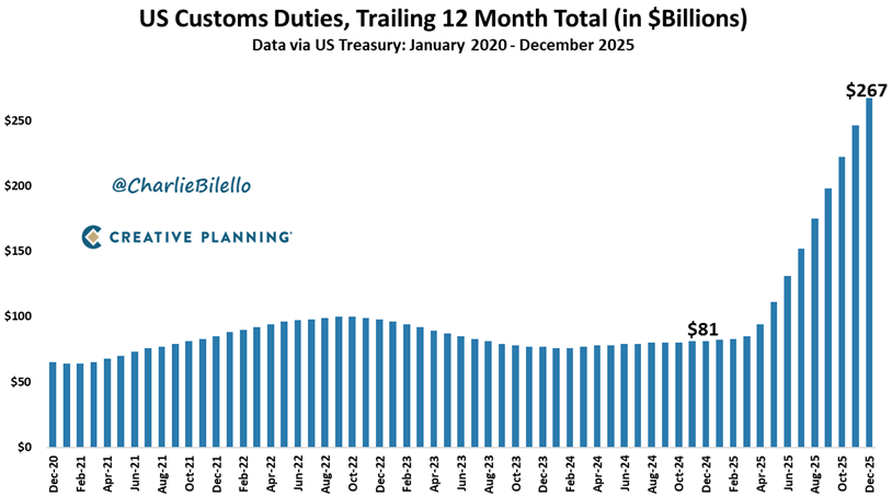 Estados Unidos recaudó una cifra récord de 267.000 millones de dólares en derechos de aduana en 2025, más del triple de lo recaudado en 2024 (81.000 millones de dólares)
