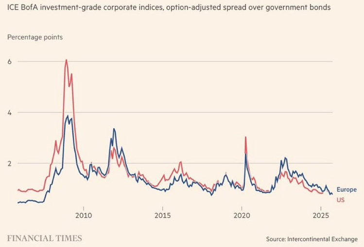 Los diferenciales de los bonos corporativos se reducen hasta alcanzar su nivel más bajo en décadas