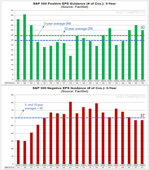 El número de empresas del S&P 500 que publicaron previsiones positivas sobre el BPA para el cuarto trimestre (50) está por encima de las medias de los últimos 5 y 10 años