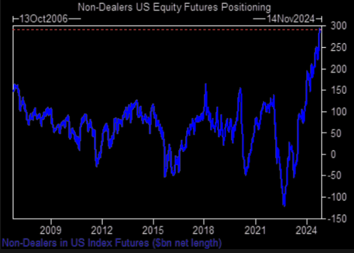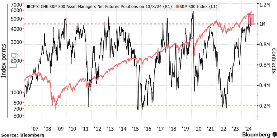 Los gestores de activos se acercan al récord de posiciones largas en futuros sobre acciones estadounidenses