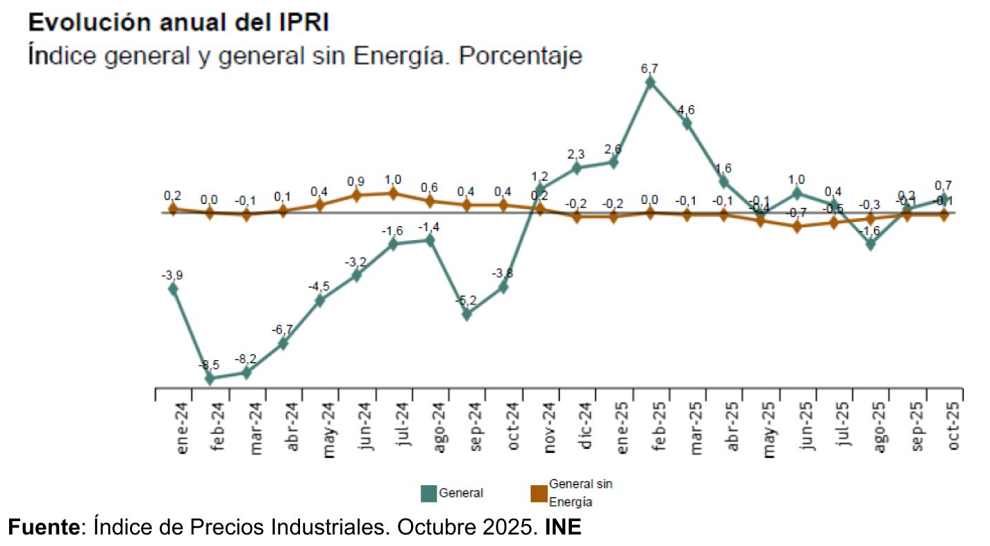 Los precios industriales de España suben un 0,7% interanual en octubre