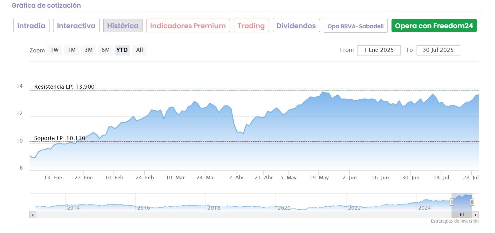 Histórico de la Bolsa y cotizaciones