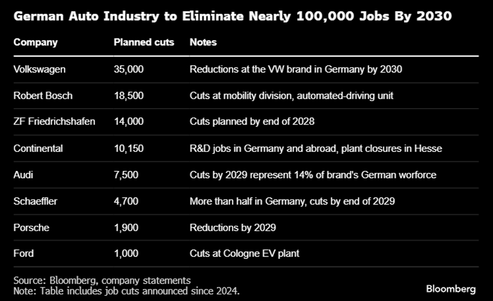 El sector automovilístico alemán ha perdido aproximadamente 55.000 puestos de trabajo en los últimos dos años. Se prevé que desaparezcan decenas de miles de puestos más para 2030, en una industria que da empleo a más de 700.000 personas.