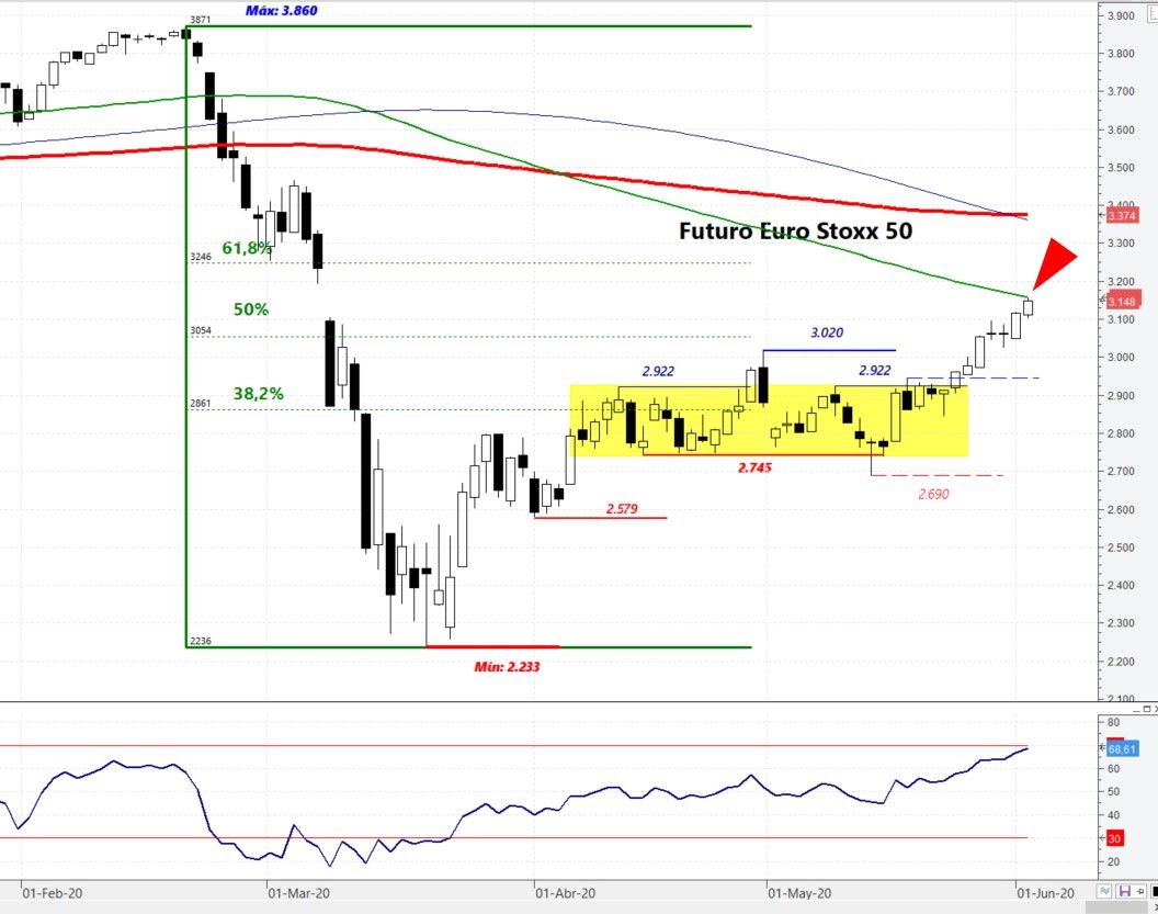 Dax y Euro Stoxx50. El futuro alemán llega a la SMA200