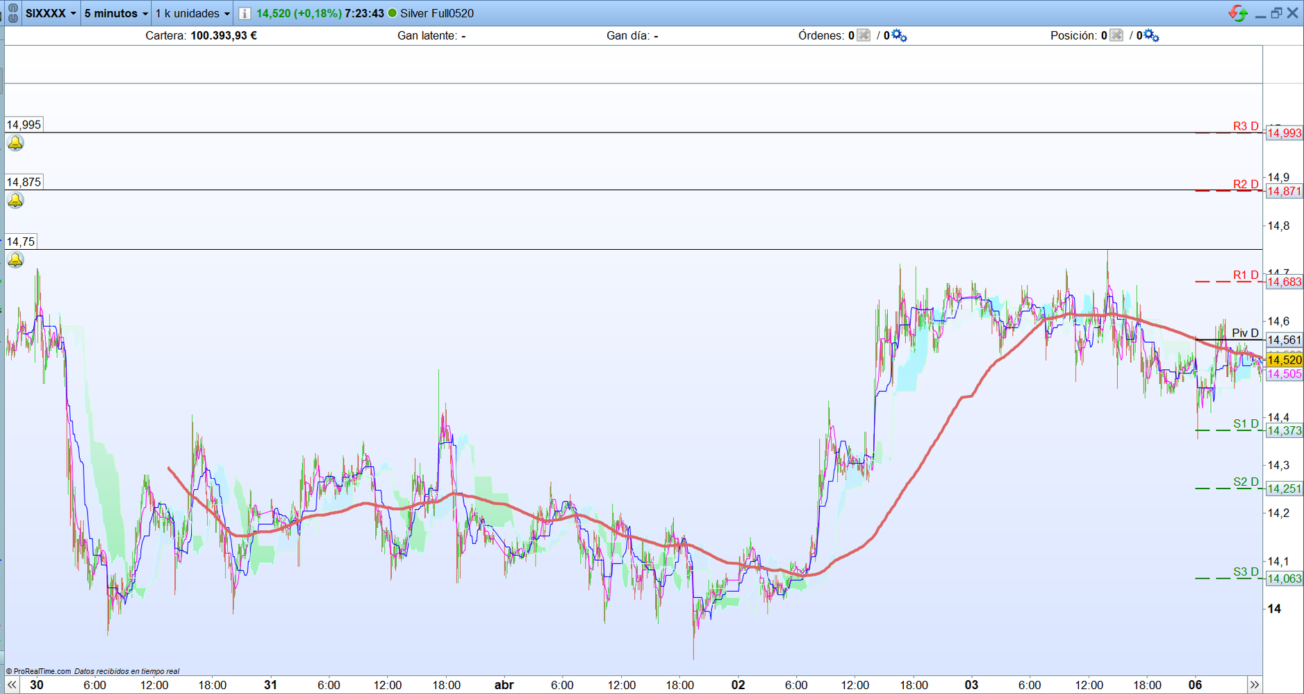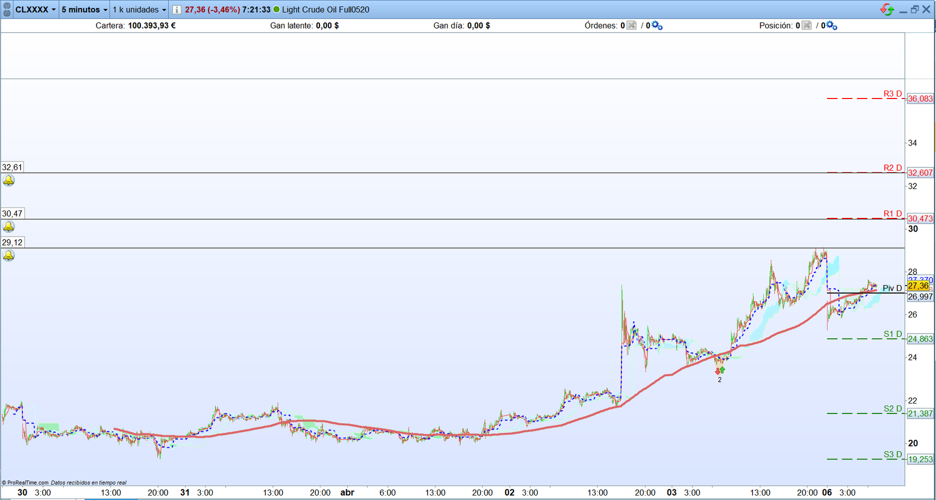 Los puntos clave que deberán superar para continuar las subidas son, los 2.750 del futuro del EURO STOXX 50 y los 9.925 del futuro del Dax. Este último está intentado romper dicho nivel en estos momento. Para que sea fiable la subida ambos activos deben romper con fuerza los niveles indicados.