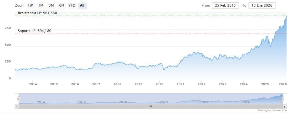 La resistencia a mediano y largo plazo se encuentra en los 961.53 dólares. Mientras, los indicadores de Ei se muestran en su mayoría alcistas.