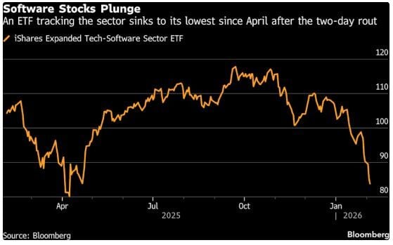 La caída no se limita a las empresas que cotizan en bolsa en EE.UU. UU. London Stock Exchange Group Plc, Tata Consultancy Services Ltd. e Infosys Ltd. se han desplomado esta semana debido al temor a que la IA se desplace a las acciones.