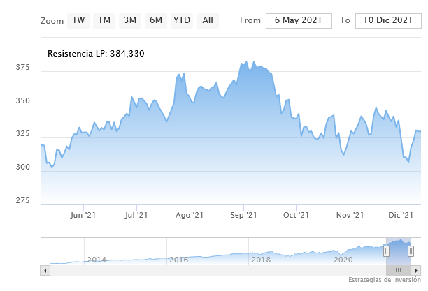 Meta cotiza en los 337,33 dólares y los indicadores de Ei se muestran prácticamente bajistas.