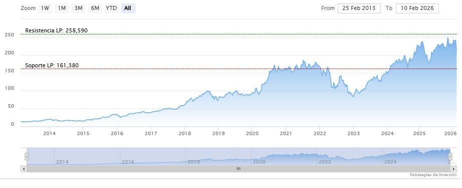 El soporte a mediano plazo se encuentra en los 203.35 dólares. Mientras, los indicadores de Ei se muestran en su mayoría bajistas.