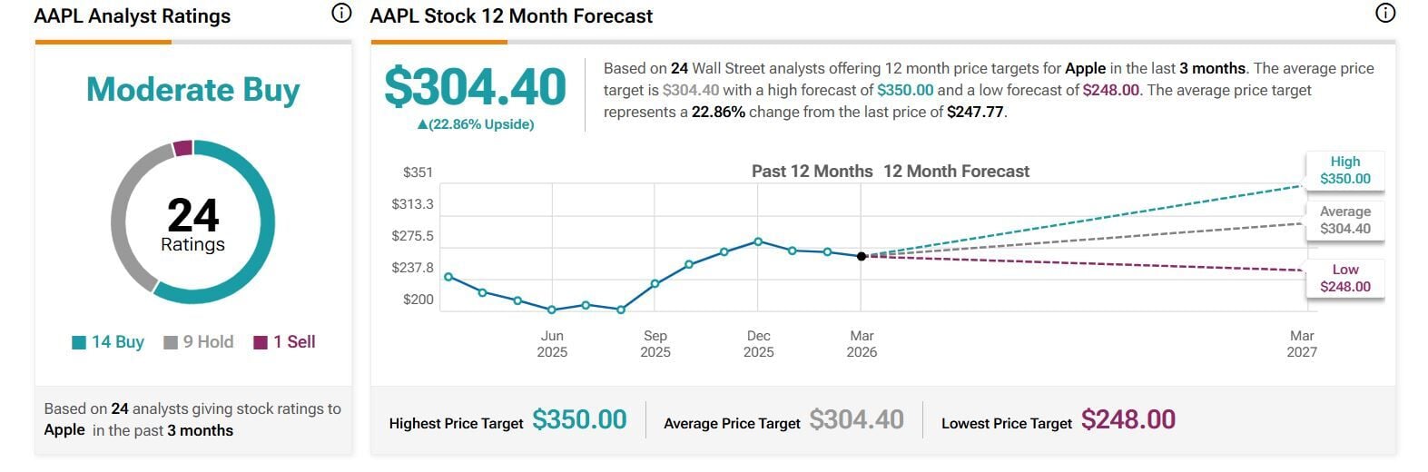 Mismo precio objetivo y posible recorrido alcista desde Melius Research, aunque su calificación sobre las acciones de Apple es de comprar.