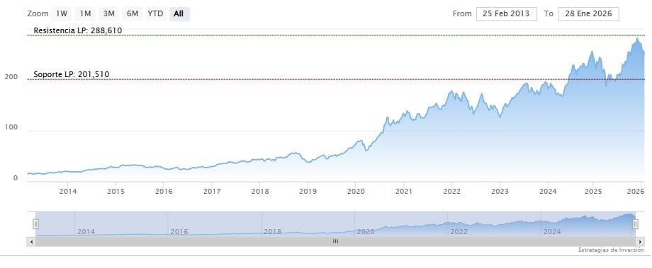 La resistencia a mediano y largo plazo se encuentra en los 288.61 dólares. Mientras, los indicadores de Ei se muestran mixtos.