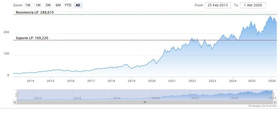 La resistencia a mediano plazo se encuentra en los 280,91 dólares. Mientras, los indicadores de Ei se muestran mixtos.