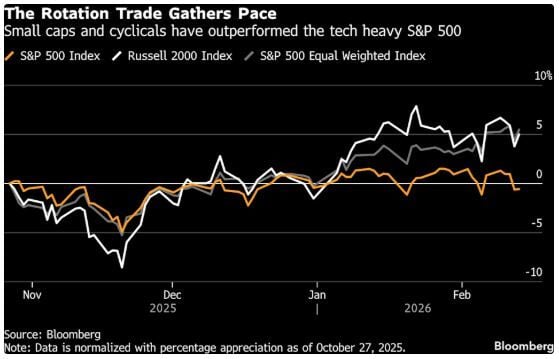Se esperan niveles récord de gasto de capital este año, y las cuatro mayores empresas tecnológicas estadounidenses pronostican conjuntamente un gasto de aproximadamente 650.000 millones de dólares en 2026. La reacción del mercado a estas proyecciones ha sido dispar. Microsoft sufrió su mayor desplome en casi seis años debido a la preocupación sobre el tiempo que podrían tardar las inversiones en amortizarse, mientras que Meta (Facebook) subió más del 11 % tras revelar sus ambiciosos planes de inversión en IA.