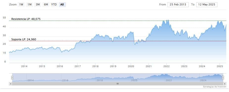 La resistencia a mediano plazo se encuentra en los 47.09 dólares. Mientras, los indicadores de Ei se muestran en su mayoría alcistas.