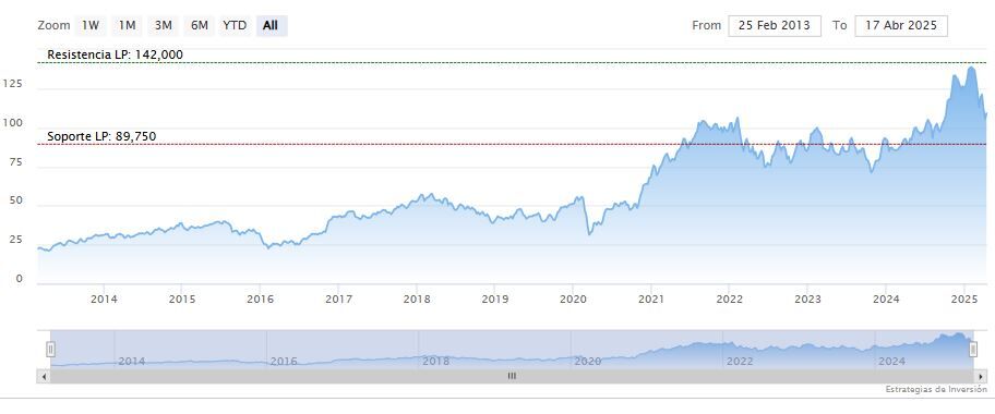 La resistencia a mediano y largo plazo se encuentra en los 145 dólares. Mientras, los indicadores de Ei se muestran mixtos.