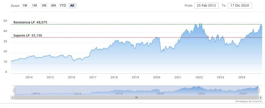El soporte a mediano plazo se encuentra en los 38.73 dólares. Mientras, los indicadores de Ei se muestran mixtos.