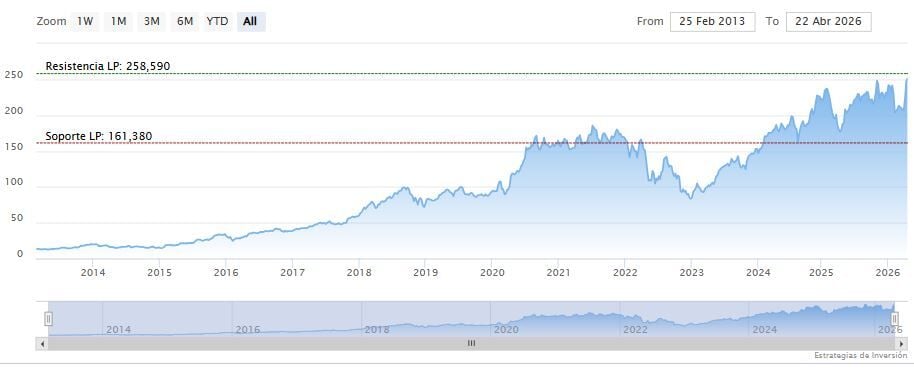 La resistencia a mediano plazo se encuentra en los 256.19 dólares. Mientras, los indicadores de Ei se muestran prácticamente alcistas.