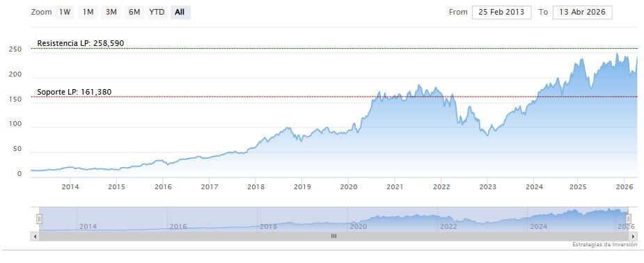 La resistencia a mediano plazo se encuentra en los 248.93 dólares. Mientras, los indicadores de Ei se muestran prácticamente alcistas.