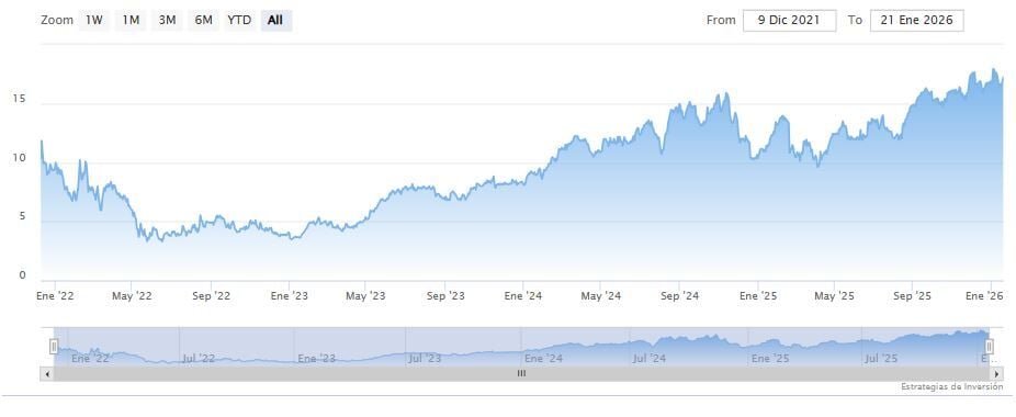 El crecimiento de la compañía ha sido espectacular, con un aumento interanual del 42% en los ingresos en el tercer trimestre (finalizado el 30 de septiembre). Nu reportó un margen de beneficio neto estelar del 18.8% ese trimestre. Por consenso, los analistas del lado vendedor esperan que las ventas y las ganancias por acción aumenten a tasas anuales compuestas del 30% y el 37%, respectivamente, entre 2025 y 2027.