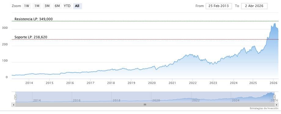 El soporte a mediano y largo plazo se encuentra en los 349 dólares. Mientras, los indicadores de Ei se muestran mixtos.