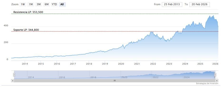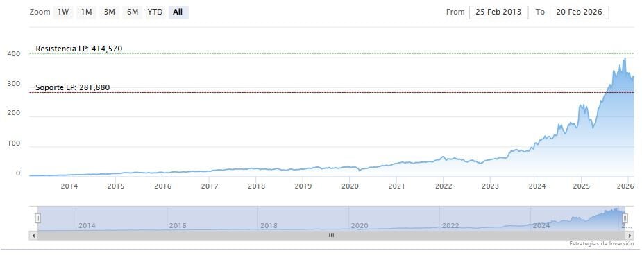 La resistencia a mediano y largo plazo se encuentra en los 414.57 dólares. Mientras, los indicadores de Ei se muestran mixtos.
