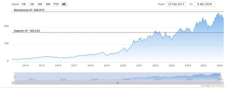 La resistencia a mediano plazo se encuentra en los 280.91 dólares. Mientras, los indicadores de Ei se muestran mixtos.