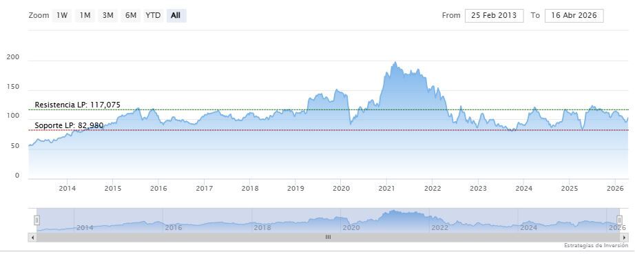 La resistencia a mediano plazo se encuentra en los 114.27 dólares. Mientras, los indicadores de Ei se muestran mixtos.