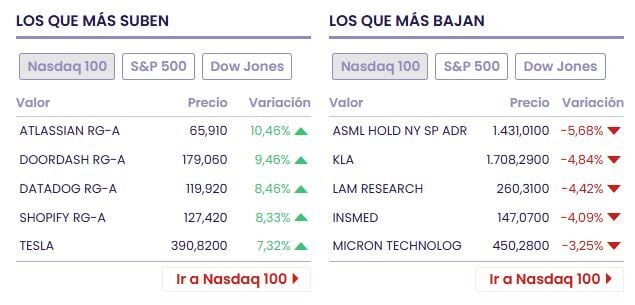 Entre las acciones ganadoras tenemos a Atlassian Rg-A (+10.53% a 66 dólares), Robinhood Mkts Rg-A (+10.41% a 87.32 dólares) y Microsoft (+4.62% a 411.27 dólares)