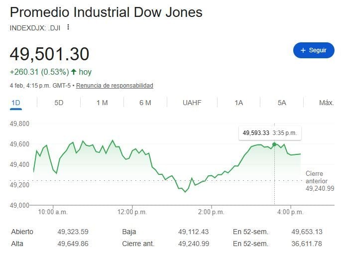 La inteligencia artificial o IA da un duro golpe al mercado ante el pesimismo entre los analistas e inversores que han decidido hacer una rotación sectorial de las acciones tecnológicas a las de valor. Impulsando al alza al DOW JONES Ind Average al cierre en un +0.53% a 49.501 puntos, mientras el S&P 500 y NASDAQ 100 corrigen en un -0.51% a 6.882 puntos y -1.77% a 24.891 puntos respectivamente.