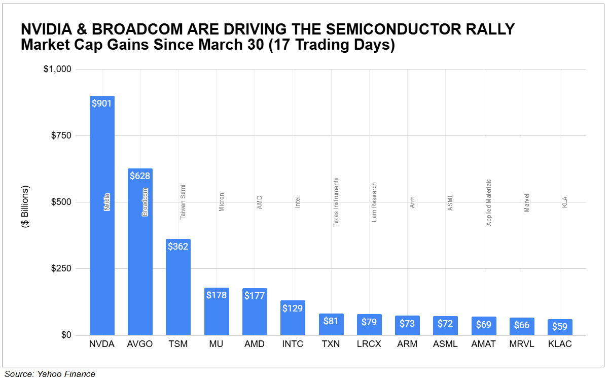 Mientras tanto, las acciones de semiconductores sumaron 3 billones de dólares al mercado en los últimos 17 días según Yahoo Finance.