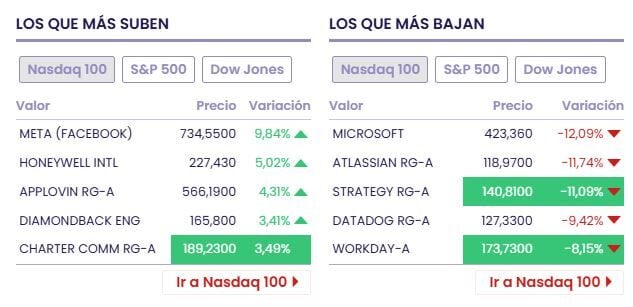 Meta lideraba las subidas tras sus resultados trimestrales como comentamos al inicio del artículo.