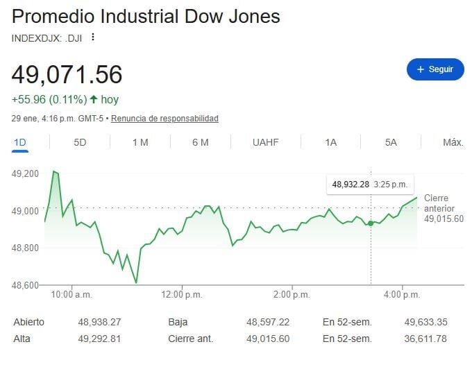 Wall Street se sumía este jueves en los resultados trimestrales de de las Big Tech. Microsoftdecepcionaba por un gasto de capital mayor al previsto por la primera y ello terminó opacando los buenos de Meta (Facebook). Tesla también decepcionó en esta temporada, aunque con algo de entusiasmo por parte de los analistas de cara al futuro de la firma. Lo que conllevó a una subida al cierre del jueves para el DOW JONES Ind Average del +0.11% a 49.071 puntos, y una corrección para el S&P 500 y NASDAQ 100 -0.20% a 6.963 puntos y -0.53% a 25.884 puntos respectivamente. Sin olvidar las tensiones entre EE.UU. e Irán.