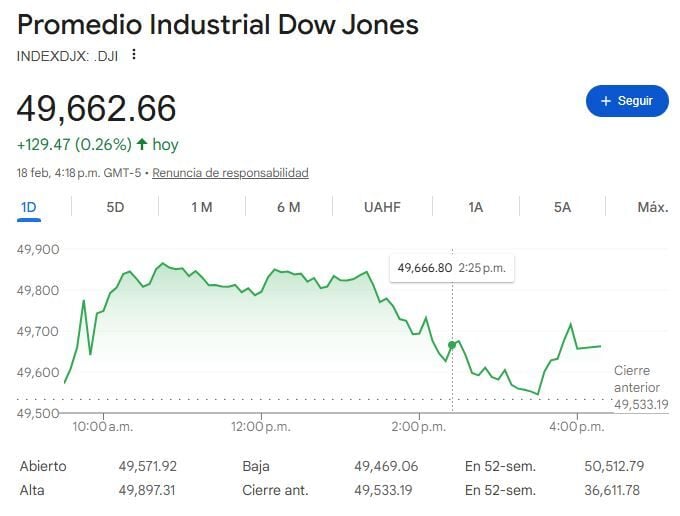 Miércoles de Reserva Federal (FED) en Wall Street con las actas de enero. Los responsables de la política monetaria se han inclinado por mantener los tipos de interés estables, salvo que la inflación sufra caídas. También el mercado ha reducido los temores sobre las acciones de software por la inteligencia artificial, aunque siguen evaluando el impacto en el largo plazo. Ante ello, el DOW JONES Ind Average, S&P 500 y NASDAQ 100 cierran la sesión un +0.26% a 49.662 puntos, +0.56% a 6.881 puntos y +0.78% a 22.753 puntos respectivamente.