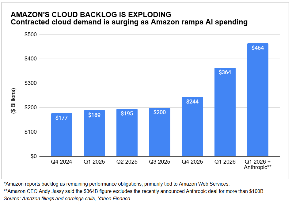 Cabe destacar que la cartera de pedidos de Amazon valorada en 364.000 millones de dólares para el primer triemestre 2026 respalda el auge de la IA, según Yahoo Finance.