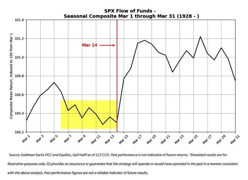 Eso sí, los datos históricos (desde 1928), sugieren que la liquidez del mercado suele mejorar a mediados de marzo para el S&P 500.