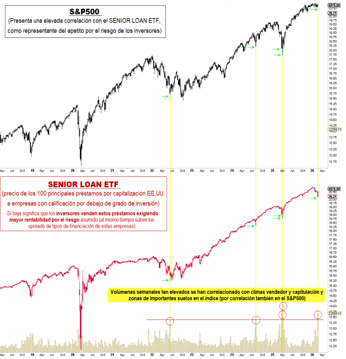 A esta lectura se suma una señal procedente del mercado de crédito. El informe de Renta 4 destaca “el alto volumen experimentado la semana pasada en el índice que engloba los 100 principales préstamos apalancados de EE. UU.”, considerado un termómetro del apetito por el riesgo. Influido por la debilidad del sector software, dicho repunte de volumen ha estado “históricamente asociado a un clímax y claudicación vendedora”.